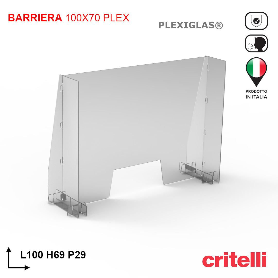 Barriera plexiglass e policarbonato di protezione trasparente 100×70 cm PLEX