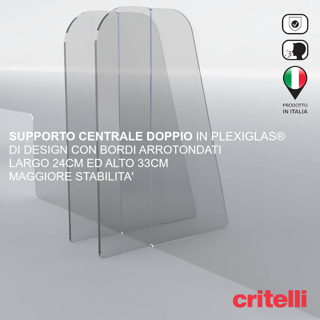 Lo schermo protettivo con grande foro è utile per attività che richiedono una maggiore area aperta di utilizzo, tipo: attività commerciali, ristoranti, pizzerie, attività di ristorazione, take away, alimentari, pasticcerie, panetterie, bar, estetiste, manicure, nails e in generale per chi ha bisogno di un foro di passaggio agevole alla propria attività.