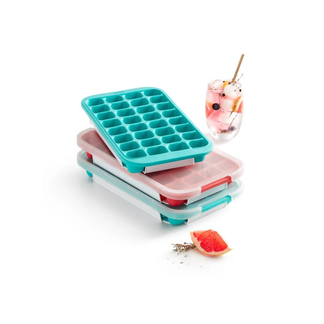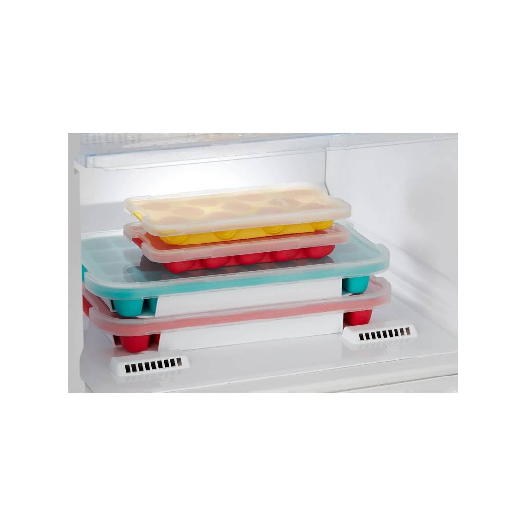 Questo forma ghiaccio è perfetto per l’uso quotidiano, grazie alla sua grande capacità di 32 cubetti. I cubetti di ghiaccio, una volta pronti, si estrarranno con facilità dalla vaschetta, realizzata in gomma flessibile. La vaschetta è dotata di un coperchio in polipropilene, che impedisce la trasmissione di odori dal vano congelatore e permette di impilarle. La base in dotazione garantisce una maggiore stabilità.
