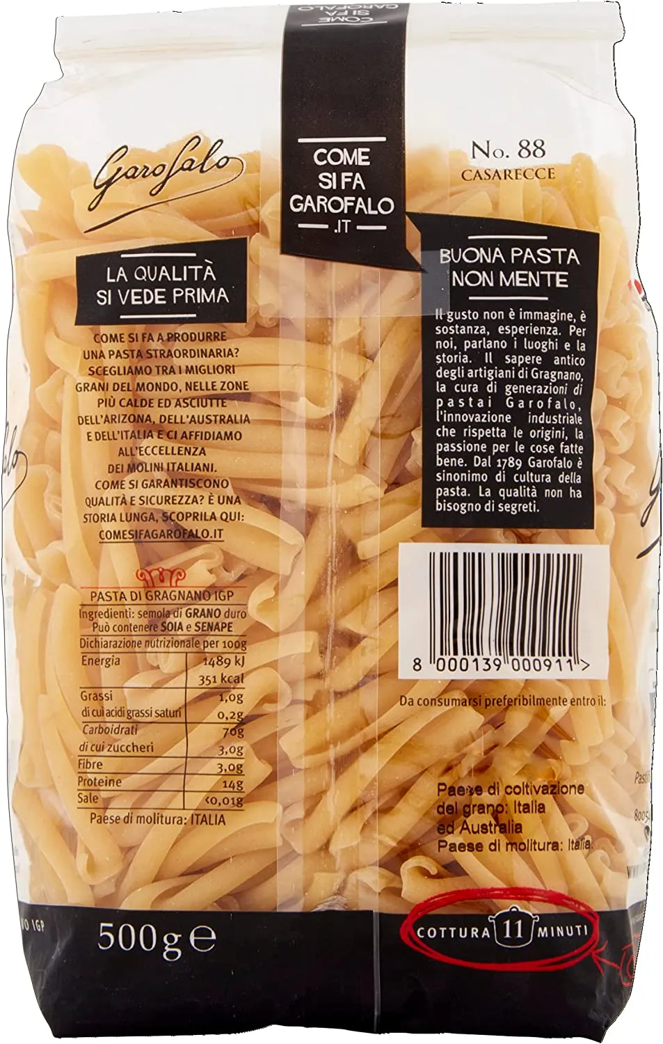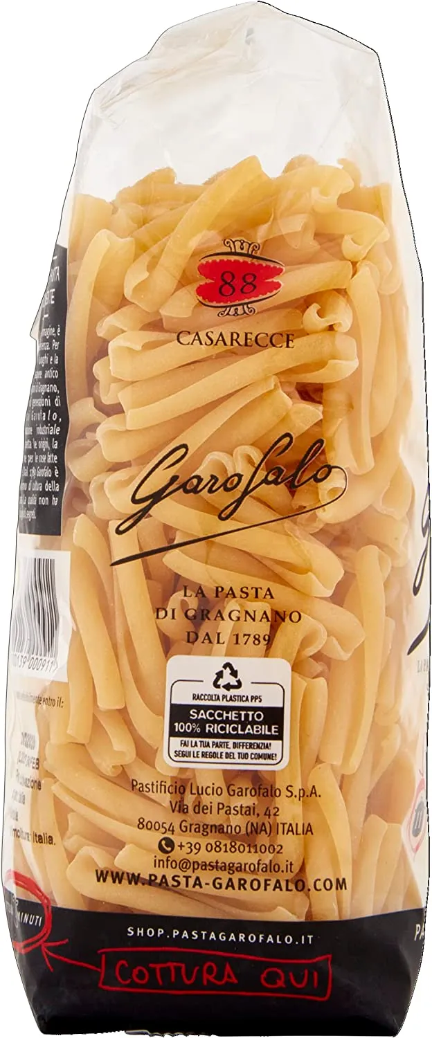 Evocano il piacere genuino della pasta fatta in casa a mano, le Casarecce Garofalo si adattano a primi piatti tradizionali e a ricette moderne e ardite.