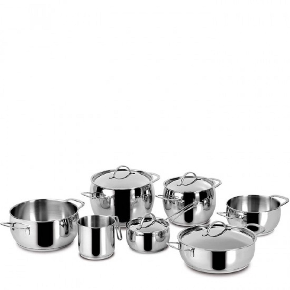 - Adatta all’Induzione. Set Composto da Pentola 18+cop, Pentola 22+cop, Casseruola 18, Casseruola 22, Tegame 24+cop, Bollilatte 12 e Casseruola manico lungo 14+cop. Fondo Lagoseal®Plus Il fondo incapsulato LAGOSEAL® PLUS a tre strati (acciaio-alluminio-acciaio) è adatto ad ogni piano di cottura e favorisce una perfetta diffusione del calore, riducendo al minimo il rischio di attaccamento dei cibi. Lucidatura esterna a specchio La lucidatura interna è estremamente curata per una cucina sana e una facile pulizia.