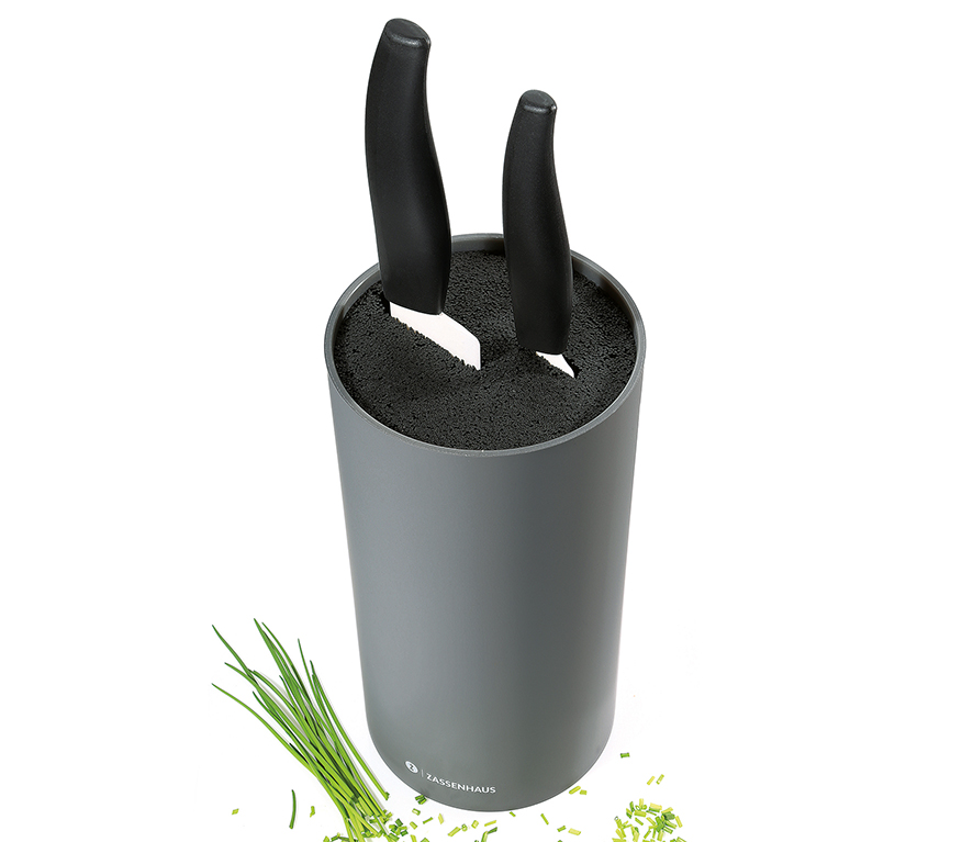 La flessibilità è la loro forza. I portacoltelli di design di Zassenhaus hanno un inserto in setola mobile invece di recessi rigidi. Possono essere equipaggiati individualmente con coltelli con una lunghezza della lama fino a 20 cm. Basta rimuovere l’inserto per una facile pulizia. Gli ingegnosi aiutanti in plastica di alta qualità stanno saldamente e senza graffi su piedini in plastica, mettono ordine in cucina e attirano l’attenzione con i loro colori.