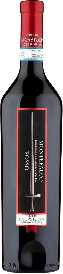 Montefalco DOC Rosso, vino rosso italiano. Dal terroir calcareo e argilloso di Montefalco nasce un vino rosso corposo di colore rubino, aromatico, dal sapore deciso, con note di frutta rossa a polpa, speziato, dal finale tannico. Gli aromi sono esaltati dall’affinamento in legno.