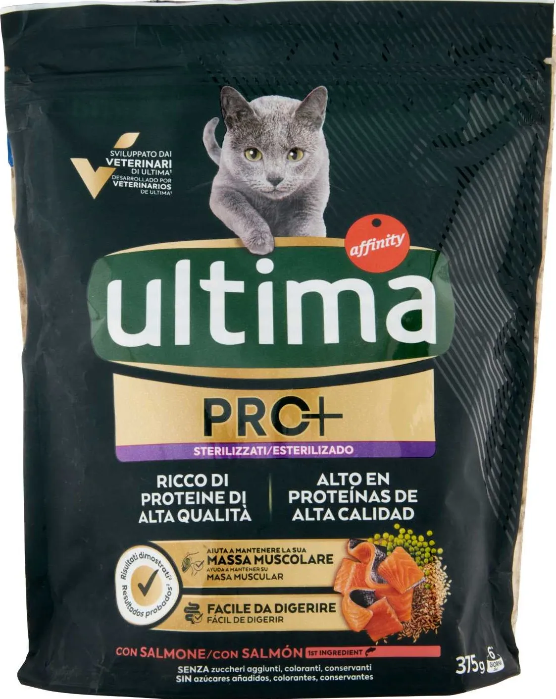Ultima Pro+ è la nostra esclusiva formula di nutrizione avanzata, con risultati dimostrati, che contribuisce al benessere del tuo gatto. Pro+ Mix, la nostra innovativa combinazione di proteine di alta qualità, con piselli e proteina di frumento fonte di proteina vegetale, con salmone come primo ingrediente fonte di proteina animale, con lievito fonte di proteina alternativa.