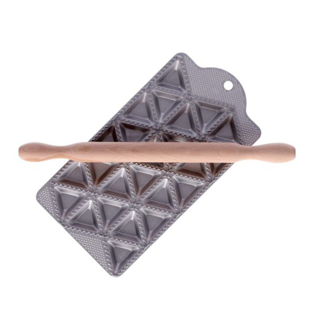 Vassoio Raviolatore per raviolo triangolare mm50 (24 pz) con piccolo mattarello legno