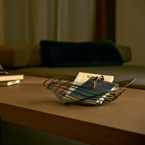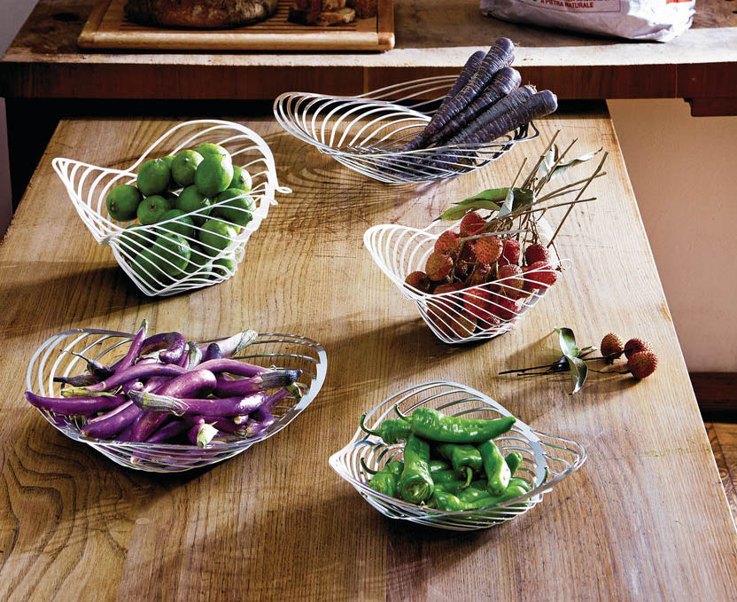 La fruttiera Trinity, disegnata da Adam Cornish, è una semplice forma geometrica che viene sviluppata, come fosse un vortice, fino a formare un’elegante struttura concentrica. Realizzata in acciaio inossidabile, la fruttiera ricrea l’aspetto di un elemento naturale attraverso i moderni processi di produzione industriale. La forma originale e le dimensioni capienti la rendono adatta a essere utilizzata anche come elegante centrotavola.