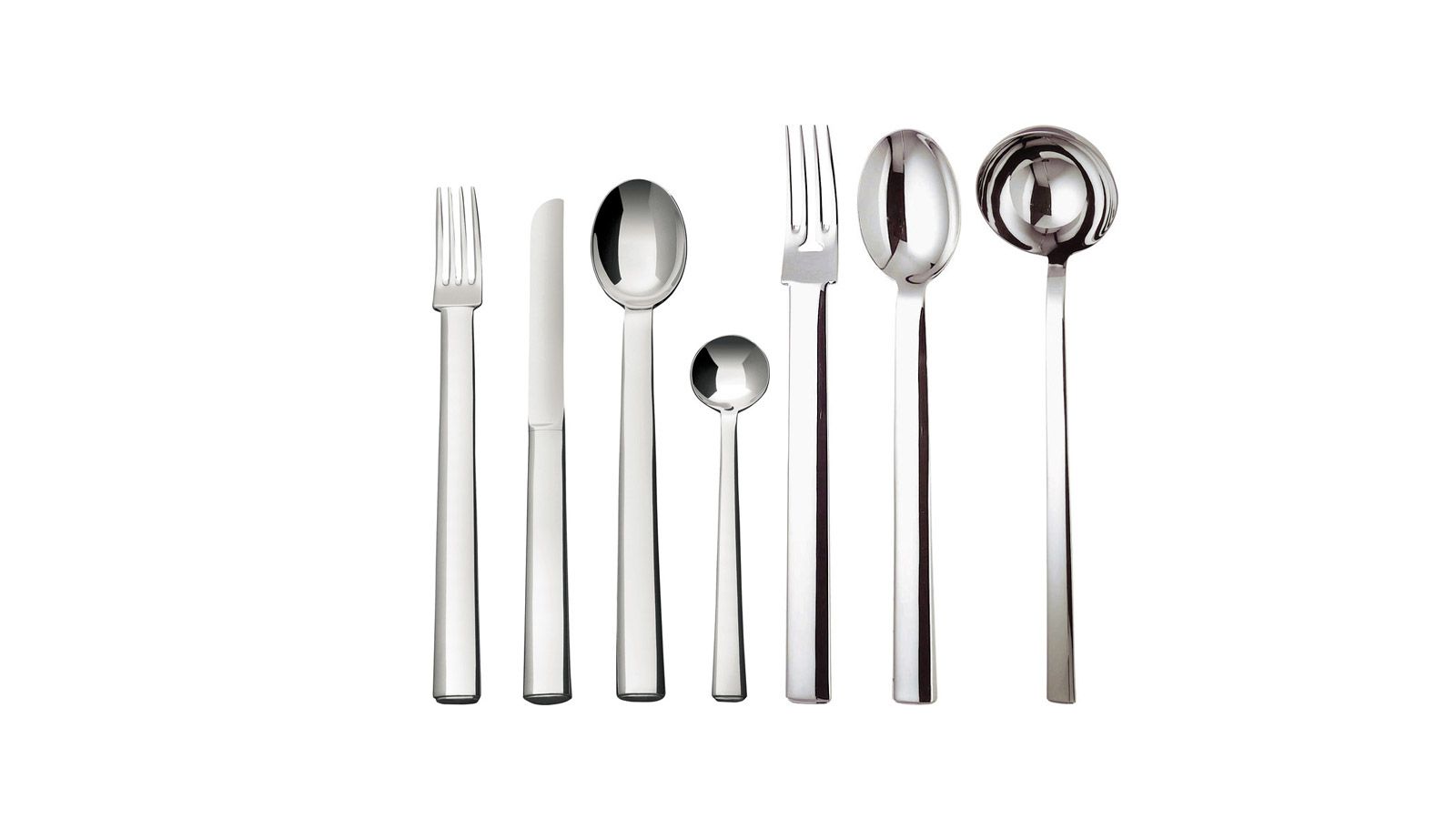Il servizio di posate Rundes Modell disegnato da Josef Hoffmann nel 1906, rispecchia pienamente la ricerca di funzionalità abbinata all’estrema eleganza formale e la raffinata lavorazione dei materiali tipici dei Wiener Werkstätte, di cui l’autore fu uno dei fondatori. Alessi ha presenta una riedizione in acciaio inossidabile 18/10 di questo storico servizio.