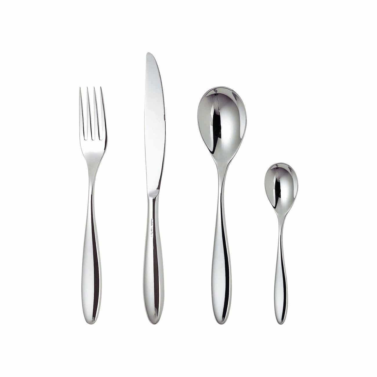 Servizio di posate composto da sei cucchiai da tavola, sei forchette da tavola, sei coltelli da tavola, sei cucchiaini da caffè in acciaio inossidabile 18/10.