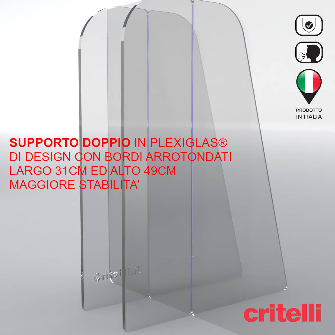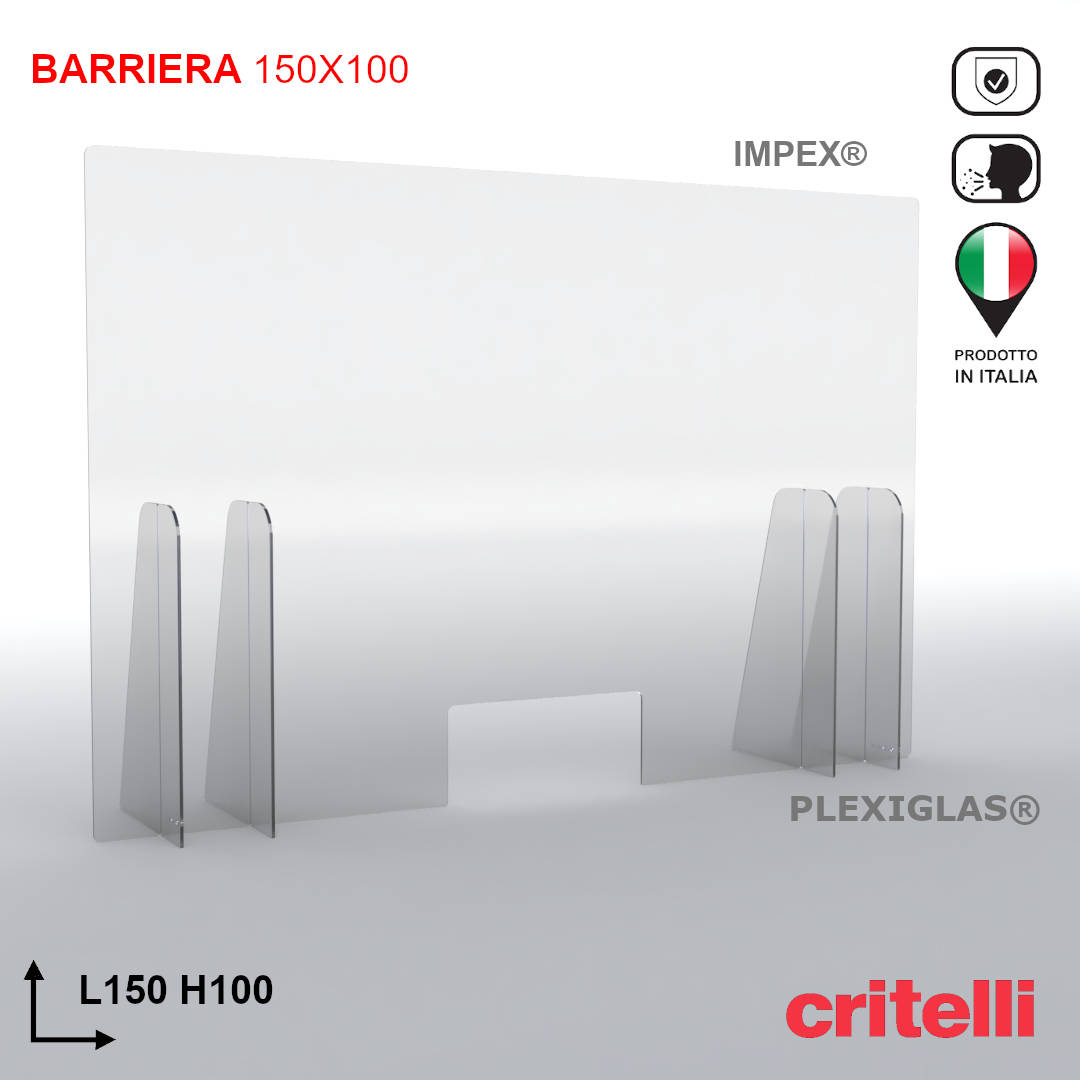 La barriera protettiva parafiato Critelli aiuta a ridurre al minimo il contatto fisico tra le persone perchè offre uno schermo impermeabile a protezione del contatto aereo diretto.