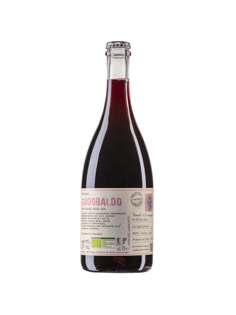 Il vino rosso Guidobaldo di Tenuta Cà Sciampagne è un rosso rifermentato ottenuto da uve di collina nei pressi della periferia di Urbino.