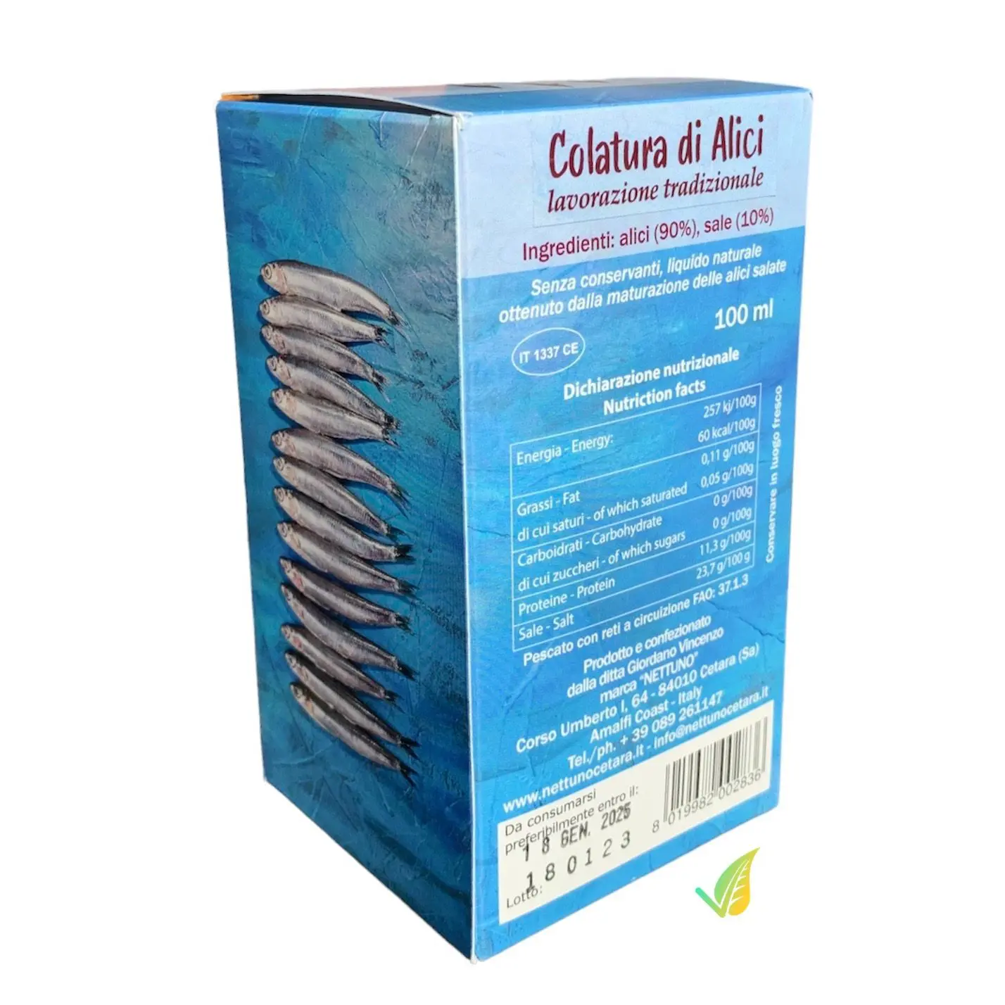 Senza conservanti, liquido naturale, ottenuto dalla maturazione delle alici salate