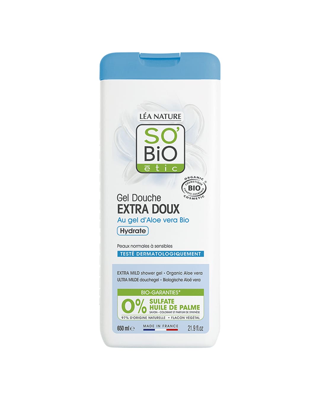 Doccia Crema con formula ultra delicata, specifico per pelli sensibili, con Aloe Vera biologica.