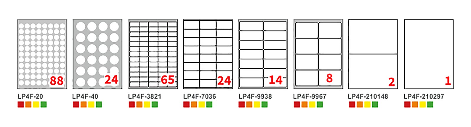 Il numero in rosso indica le etichette per foglio.