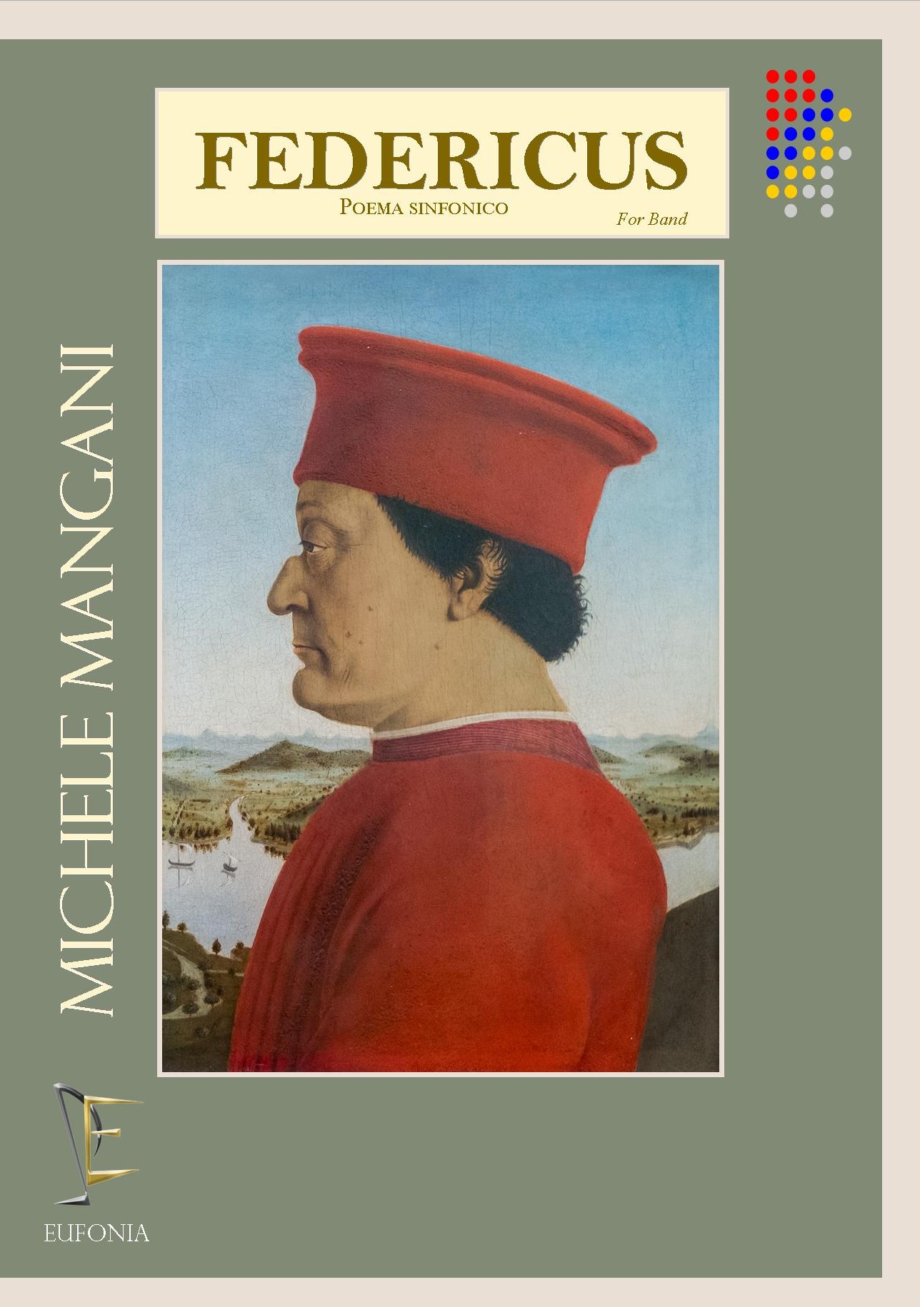 Federico da Montefeltro Duca di Urbino fu un celebre condottiero e abile stratega che seppe trasformare la sua corte di Urbino in un vivace centro culturale del rinascimento. Mecenate illuminato, promosse le arti e le scienze, attirando nel suo palazzo grandi artisti come Piero della Francesca. Con il poema sinfonico “Federicus”, il compositore urbinate Michele Mangani, vuole rendere omaggio a questo grande personaggio, raccontando con la musica la sua vita e le sue gesta. La composizione alterna diversi momenti musicali che descrivono la vita di Federico: le imprese militari, la vita di corte, l’incoronazione. FEDERICUS un Poema sinfonico che rappresenta uno dei brani per banda più significativi, in cui l’elaborazione armonica e l’orchestrazione moderna si integrano perfettamente con strutture melodiche e timbriche ispirate al periodo medievale.