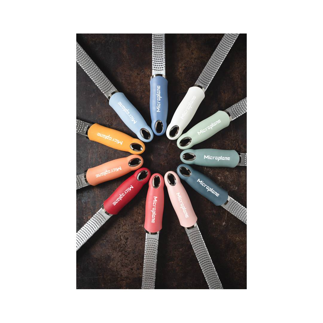 La grattugia Microplane Zester, dalla caratteristica forma lunga e sottile, permette di grattugiare finemente il formaggio a pasta dura, le scorze di agrumi, lo zenzero, l’aglio, le spezie, la noce moscata, il cioccolato, i tartufi, le noci e molti altri ingredienti.