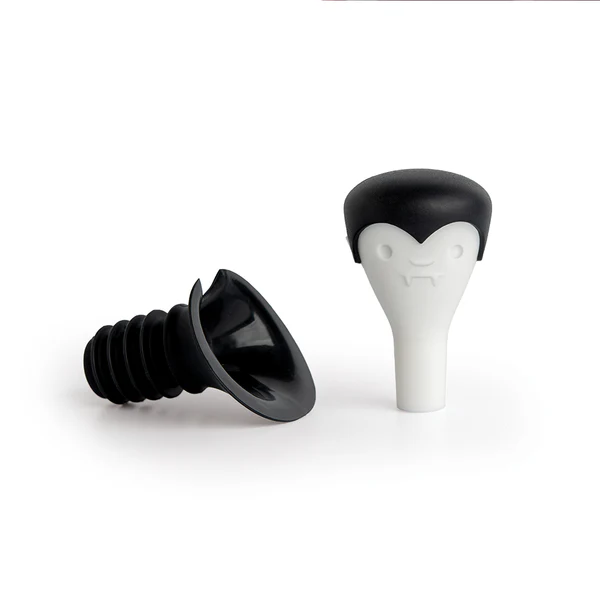 Stappate il fascino notturno del nostro tappo e versatore per vino, che affonda con entusiasmo i suoi denti nelle vostre bottiglie non finite.