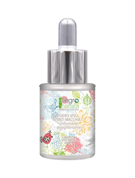 Il Siero Viso Antimacchia di Allegro Natura è un trattamento specifico per contrastare i segni del foto-invecchiamento e proteggere la pelle dagli effetti dannosi della luce blu emessa da monitor e dispositivi digitali.