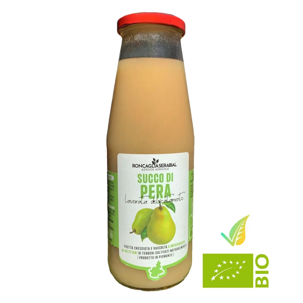 Questo succo contiene solo pere del Piemonte di una piccola azienda agricola famigliare.