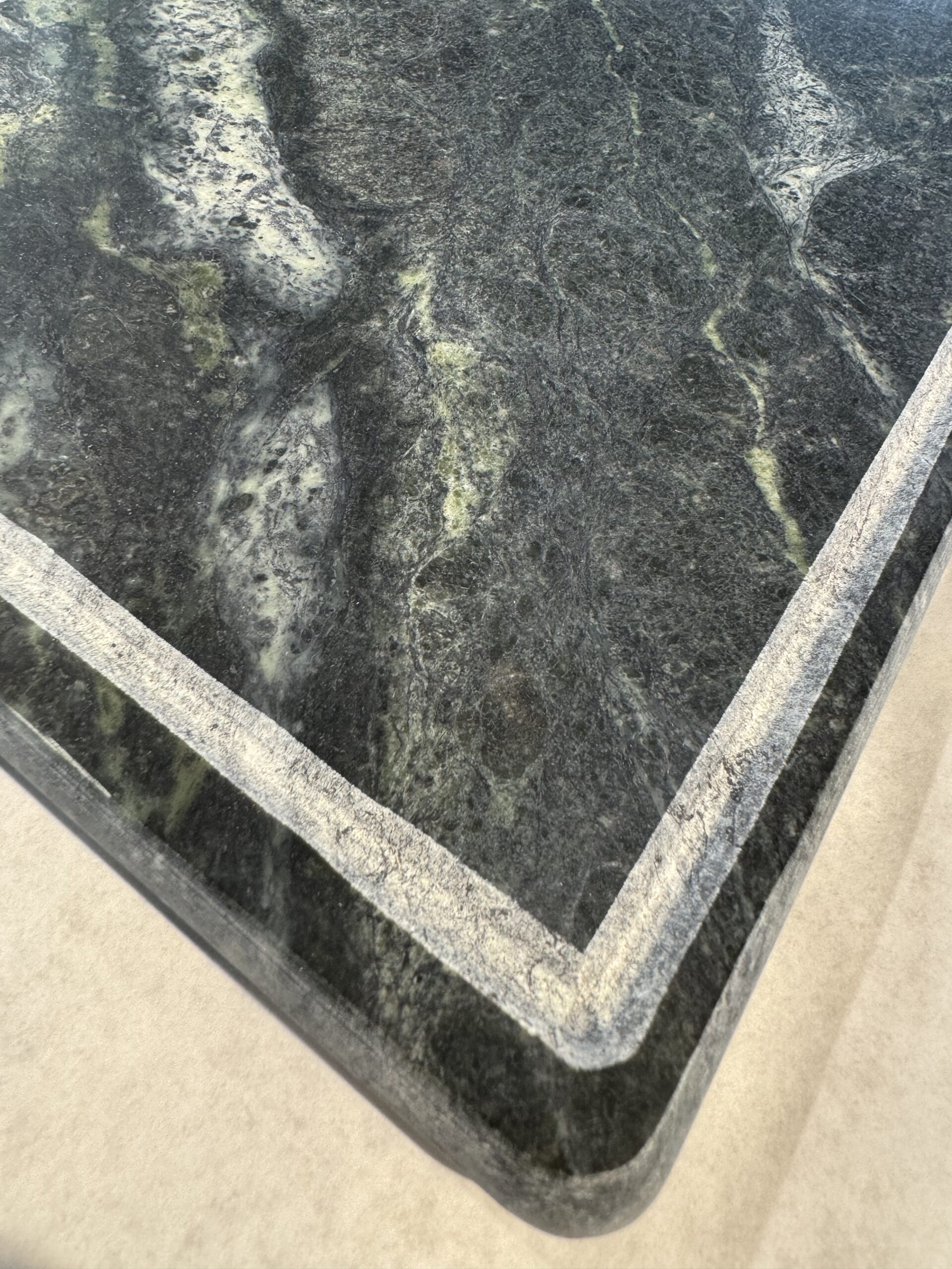 Design elegante con venature di colore verde.
