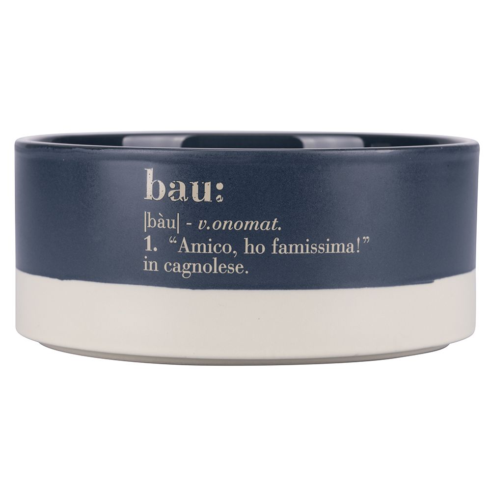 Ciotola realizzata in gres, con finitura matt e scritta simpatica Bau. Ideale per crocchette o acqua.