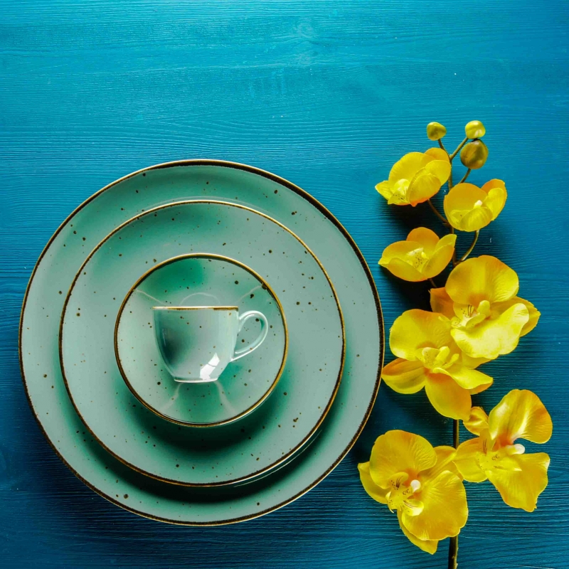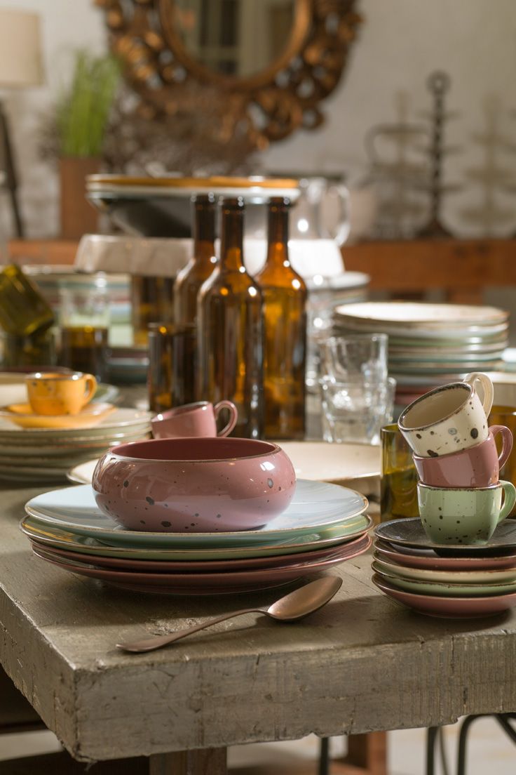 Le forme dei piatti e delle tazzine Cottage sono uniche, i colori sono favolosi e le rifiniture con smalti reattivi rendono il tutto ancora più sorprendente.